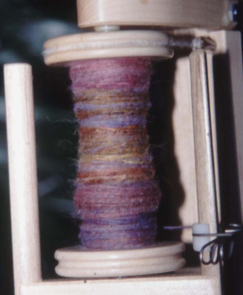 ![]() Handspun llama on the spinning wheel |