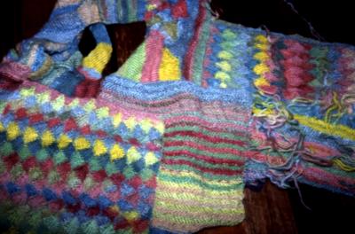 My current work is wall-shawls and artknit sweaters which incorporate and explore the use of energized handspun yarns. These yarns use the direction and amount of twist to add angles and texture to the knitting surface. Energized yarn, in combination with the variety of surface details knitting offers, has opened a whole new area of knitting for me.